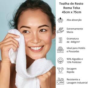 Contém: 02 peças 02 toalhas de rosto profiline roma 0,45x0,75m Alta absorção e maciez Resistência à lavagem industrial e ao cloro Gramatura: 440g/m Cor: branca