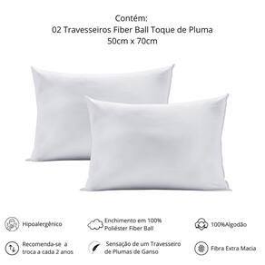 Com revestimento 100% algodão, ele oferece um toque luxuoso e suave para sua pele, enquanto o enchimento Fiber Ball hipoalergênico cuida da sua saúde, reduzindo alergias e proporcionando uma noite de sono tranquila.
