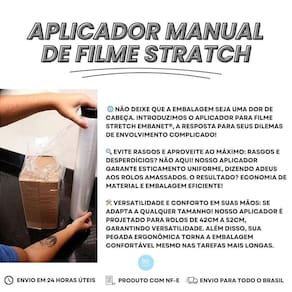 Aplicador para Filme Stretch EMBANET - Adeus perda de tempo, nós entendemos as lutas com os emaranhados e a dificuldade em esticar o filme sem desastres. Mas relaxa, porque temos a solução perfeita para você - nosso incrível Aplicador para Filme Stretch Evite Rasgos e Desperdício: Adeus rolos amassados Nosso aplicador garante que o filme seja esticado como uma estrela, reduzindo os riscos de rasgos e minimizando o desperdício. Filme stretch sem drama Economize Dinheiro: Desperte o mestre da economia em você Com nosso aplicador, você economiza dinheiro, pois precisa de menos material para uma proteção imbatível. Afinal, quem não gosta de economizar uns trocados Ideal para Empresas e Residências: Seja para embalar produtos na sua empresa ou organizar a mudança da sua casa, nosso Aplicador para Filme Stretch é o parceiro perfeito que atende a todas as suas necessidades de embalagem. Vai da mudança ao empacotamento - fácil e eficaz Contém: 03 Aplicador para filme stretch sem tubete Ajustável para bobinas entre 42cm e 52cm de largura Na EMBANET você encontra materiais de alta performance, durabilidade e ótimo acabamento, tudo não tóxico e ecologicamente correto. Oferecemos um ótimo custo-benefício, porque a qualidade não precisa custar os olhos da cara Veja mais anúncios do vendedor. Descubra o que mais temos para oferecer e transforme sua experiência de embalagem com EMBANET Marca: Não Informado
