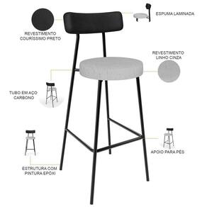 Amplamente moderna, dispondo de muito realce e design singular, o Kit 03 Banquetas Alta Bar Cozinha Sala De Jantar Aço Milão L02 Couríssimo Preto Linho Cinza - Lyam Decor vem com a personalidade e elegância que sua decoração merece! Estruturada em aço carbono, contrasta lindamente com o encosto e assento estofados, cabe mencionar ainda o revestimento do seu encosto em Couríssimo e do assento em Linho, é confeccionada por materiais de excelente qualidade, extremamente resistentes e aconchegantes.