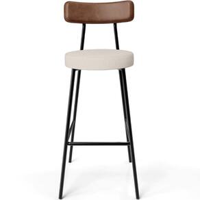 Revestimento do encosto em Couríssimo na cor Marrom e assento revestido em Linho na cor Cru, com acabamento semi brilho.