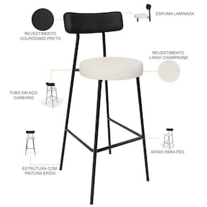 Amplamente moderna, dispondo de muito realce e design singular, o Kit 03 Banquetas Alta Bar Cozinha Sala De Jantar Em Aço Milão L02 Couríssimo Preto Linho Champagne - Lyam Decor vem com a personalidade e elegância que sua decoração merece! Estruturada em aço carbono, contrasta lindamente com o encosto e assento estofados, cabe mencionar ainda o revestimento do seu encosto em Couríssimo e do assento em Linho, é confeccionada por materiais de excelente qualidade, extremamente resistentes e aconchegantes.