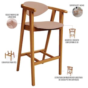 A melhor escolha para os momentos de confraternização no aconchego da sua casa, acaba de chegar! O Kit 03 Banquetas Alta Para Cozinha Bancada Bar Sala de Jantar Fixa Cecília L02 Linho Rosê - Lyam vem com a personalidade e elegância que sua decoração merece! É ideal desde refeições rápidas, até um Happy Hour com os amigos, família. Seu design único valoriza o ambiente, sem deixar pra trás a beleza e qualidade! Para deixar a sua área gourmet mais aconchegante, ela possui assento e encosto estofados, confeccionados com materiais de excelente qualidade, e extremamente resistentes.