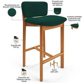 ProductLength: 47 cm | SupplierSimpleName: Kit 03 Banquetas Alta Para Cozinha Sala de Jantar Bar Dara L03 Bouclê Verde Musgo - Lyam Decor | ProductWidth: 47 cm | Largura: 47 cm | Diâmetro: na | ProductHeight: 83 cm | Largura da cadeira: 47 cm | Espessura do assento: na | Altura do assento a partir do solo: 74 cm | Profundidade do assento: 37 cm | OriginCountry: | Material: Madeira e Espuma | SizeDescription: Altura: 83cm x Largura: 47cm x Profundidade: 47cm | OriginState: PR | Color: Verde Musgo | ProductContents: 03 Banquetas | ProductInstructions: Produto para uso residencial em ambiente interno, não devendo ficar exposto diretamente ao sol, calo | MaterialFamily: Madeira e Espuma | Model: Banqueta Dara | Com estofado: Sim | Peso: 30 kg | Peso máximo suportado: 150 Kg | Com rodas: Não | Profundidade da cadeira: 47 cm | Desenho do tecido: Liso | Cor: Verde Musgo | ProductWarranty: 90 dias após o do produto | Material do estofamento: Bouclê | Cor do estofamento: Verde Musgo | É empilhável: Não | Fabricante: Lyam Decor | ProductWeight: 30 kg | Estilo: Clássico | Com espaço de armazenamento: Não | É dobrável: Não | Altura da cadeira: 83 cm | Cor da estrutura da cadeira: Castanho | Tipo de produto: Banqueta | Requer montagem: Não | Com apoio de braços: Não | Largura do assento: 45 cm | Quantidade de Caixas de embalagem: 1 | Cor do assento: Verde Musgo | É cadeira de balanço: Não