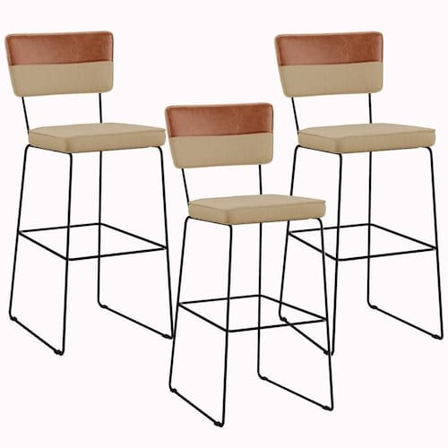 O espetáculo que é o Kit 03 Banquetas Altas Sala Jantar Allana L02 Faixa Couríssimo Camel Linho Bege Escuro - Lyam Decor vem para agregar ainda mais valor na decoração da sua casa. Sua estrutura em aço remete-nos ao estilo industrial que surgiu em Nova York no século XX, já o assento e encosto estofados trazem equilíbrio e conforto criando a combinação perfeita para o ambiente.