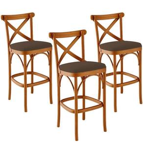Kit 03 Banquetas Altas Cozinha Bancada Bar Sala De Jantar Estofada ávila L02 Suede Marrom - Lyam