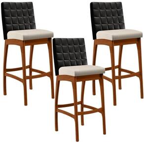 ndo muita excelência, o Kit 03 Banquetas Altas Cozinha Sala De Jantar Fixa Mila B04 Couríssimo Preto Linho Cru - Lyam Decor é o complemento que faltava para deixar sua casa ainda mais extraordinária. Seu encosto com costura em padrão quadriculado e assento estofados, centralizam em si uma graciosidade estonteante, sem perder todo o conforto. A estrutura em madeira, na cor nozes, também é digna de notoriedade, por imprimir bastante personalidade a sua decoração. Vale ressaltar ainda, o apoio para os pés que garante maior à banqueta.