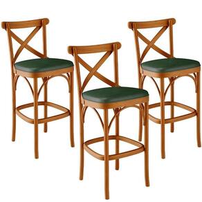 Kit 03 Banquetas Altas Cozinha Bancada Sala Jantar Estofada ávila L02 Couríssimo Verde Musgo - Lyam
