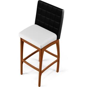 ndo muita excelência, o Kit 03 Banquetas Altas Cozinha Sala Jantar Fixa Mila B04 Couríssimo Preto Corano Branco - Lyam Decor é o complemento que faltava para deixar sua casa ainda mais extraordinária. Seu encosto com costura em padrão quadriculado e assento estofados, centralizam em si uma graciosidade estonteante, sem perder todo o conforto. A estrutura em madeira, na cor nozes, também é digna de notoriedade, por imprimir bastante personalidade a sua decoração. Vale ressaltar ainda, o apoio para os pés que garante maior segurança à banqueta.