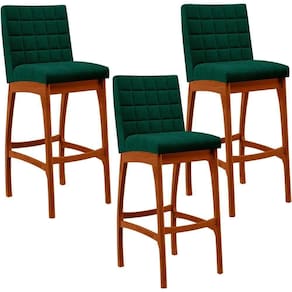 ndo muita excelência, o Kit 03 Banquetas Altas Para Cozinha Sala De Jantar Fixa Mila B04 Bouclê Verde - Lyam Decor é o complemento que faltava para deixar sua casa ainda mais extraordinária. Seu encosto com costura em padrão quadriculado e assento estofados, centralizam em si uma graciosidade estonteante, sem perder todo o conforto, sendo revestidos pelo riquíssimo tecido em bouclê que por si só já é um espetáculo. A estrutura em madeira, na cor nozes, também é digna de notoriedade, por imprimir bastante personalidade a sua decoração. Vale ressaltar ainda, o apoio para os pés que garante maior à banqueta.