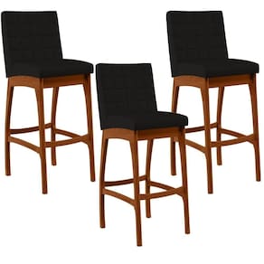 Entregando muita excelência, o Kit 03 Banquetas Altas Para Cozinha Sala de Jantar Fixa Mila B04 Suede Preto - Lyam Decor é o complemento que faltava para deixar sua casa ainda mais extraordinária. Seu encosto com costura em padrão quadriculado e assento estofados, centralizam em si uma graciosidade estonteante, sem perder todo o seu conforto. A estrutura em madeira, na cor nozes, também é digna de notoriedade, por imprimir bastante personalidade a sua decoração. Vale ressaltar ainda, o apoio para os pés que garante maior segurança à mesma.