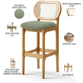 Amplamente sofisticada, a Banqueta Betta irá agregar ainda mais valor em sua decoração!! Sendo capaz de compor muito bem o ambiente, é produzida com materiais de excelente qualidade, a resistente estrutura em madeira de Taeda, na cor Mel, conta com apoio para os pés (que garante maior segurança), além do assento e encosto estofados super confortáveis e convidativos, que são revestidos em tecido Bouclê, extremamente elegante. Podendo ser disposta em bancada, cozinha americana, espaço gourmet ou home bar, as possibilidades de combinação são infinitas, o que a torna perfeita para receber família e amigos sempre de forma agradável e aconchegante, sem perder a sobriedade e requinte que possui. Você e seu lar merecem, adquira já a sua!!