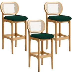 Amplamente sofisticada, a Banqueta Betta irá agregar ainda mais valor em sua decoração!! Sendo capaz de compor muito bem o ambiente, é produzida com materiais de excelente qualidade, a resistente estrutura em madeira de Taeda, na cor Mel, conta com apoio para os pés (que garante maior ), além do assento e encosto estofados super confortáveis e convidativos, que são revestidos em tecido Bouclê, extremamente elegante. Podendo ser disposta em bancada, cozinha americana, espaço gourmet ou home bar, as possibilidades de combinação são infinitas, o que a torna perfeita para receber família e amigos sempre de forma agradável e aconchegante, sem perder a sobriedade e requinte que possui. Você e seu lar merecem, adquira já a sua!! Dimensões do produto (L x A x P) 50 x 105 x 55 cm Medidas Internas: Altura do encosto: 30 cm Largura do encosto : 47 cm Altura do chão ao assento: 75 cm Largura do assento: 50 cm Profundidade do assento: 40 cm Características: Estrutura em madeira maciça de Taeda, na cor Mel com acabamento envernizado. Revestimento em Bouclê na cor Verde de alta qualidade, com acabamento semi brilho. Assento e encosto com espuma D-23. Acabamento em debrum no encosto. Suporta até 120 kg. Produto entregue montado. - Por se tratar de estofado as medidas podem ter uma pequena variação de até 3 cm. - A tonalidade do produto real poderá ter ligeira variação devido o lote de tecidos. - A limpeza deve ser feita com pano umedecido em água limpa, sem esfregar, não utilizar produtos abrasivos, desengordurantes, álcool ou solvente. Observações importantes: - Produto para uso residencial em ambiente interno, não devendo ficar exposto diretamente ao sol, calor e umidade excessivos. - Pode haver alguma diferença de tonalidade entre a imagem e o produto real, por conta do tratamento de imagens e a calibração de cores do seu monitor. - As imagens são meramente ilustrativas, não acompanham objetos de decoração e eletrônicos.- Ao receber a mercadoria, o cliente deve verificar as condições da embalagem, caso haja alguma não assine o de . - Montagem, desmontagem e outras instalações serão de responsabilidade do cliente. Não nos responsabilizamos, no ato da , por subir escadas/elevadores ou pelo por guincho em apartamentos. Eventuais despesas são de responsabilidade do comprador. - Confira as dimensões do produto e certifique-se de que passará normalmente por supostos elevadores, portas, escadas e/ou corredores de sua residência. ProductInstructions: Produto para uso em ambiente interno, nao devendo ficar exposto ao sol, calor e umidade excessivos. | SupplierSimpleName: Kit 03 Banquetas Altas Para Cozinha Bancada Sala Tela Betta Fixa L02 Bouclê Verde - Lyam | SizeDescription: Altura: 105 cm Largura: 50 cm Profundidade: 55 cm | ProductWeight: 33 kg | ProductContents: Kit 03 Banquetas | ProductWarranty: 90 dias após o do produto | ProductHeight: 105 cm | ProductLength: 55 cm | Color: Verde | ColorFamily: Verde | ColorSimple: Verde | ColorSupplier: Verde | Material: Madeira | MaterialFamily: Madeira | Model: Betta | OriginCountry: | OriginState: PR | ProductWidth: 50 cm