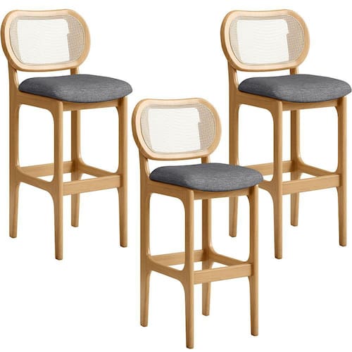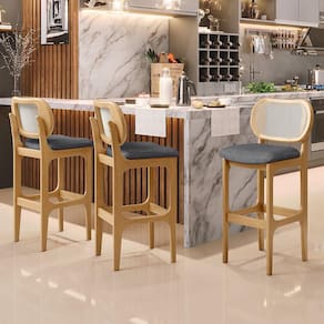 Kit 03 Banquetas Altas Para Cozinha Bancada Sala Tela Betta Fixa L02 Linho Cinza Escuro - Lyam