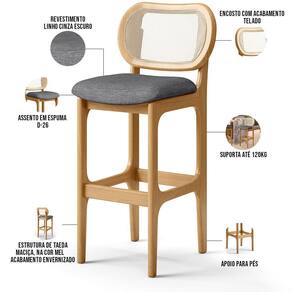 Amplamente sofisticada, a Banqueta Alta Para Cozinha Bancada Sala Tela Betta Fixa L02 Linho Cinza Escuro - Lyam irá agregar ainda mais valor em sua decoração!! Sendo capaz de compor muito bem o ambiente, é produzida com materiais de excelente qualidade, a resistente estrutura em madeira de Taeda, na cor Mel, conta com apoio para os pés (que garante maior segurança), além do assento e encosto estofados super confortáveis e convidativos, que são revestidos em tecido Linho, extremamente elegante. Podendo ser disposta em bancada, cozinha americana, espaço gourmet ou home bar, as possibilidades de combinação são infinitas, o que a torna perfeita para receber família e amigos sempre de forma agradável e aconchegante, sem perder a sobriedade e requinte que possui. Você e seu lar merecem, adquira já a sua!!