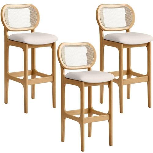 Kit 03 Banquetas Altas Para Cozinha Bancada Sala Tela Betta Fixa L02 Linho Cru - Lyam