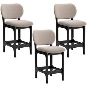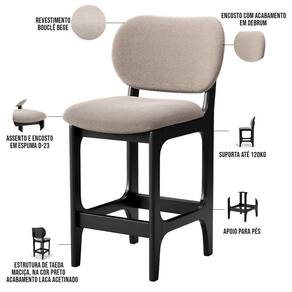 Kit 3 Banquetas Baixa Betta L02 Assento Bouclê Base Madeira Maciça Encosto Fixo Bege para Cozinha