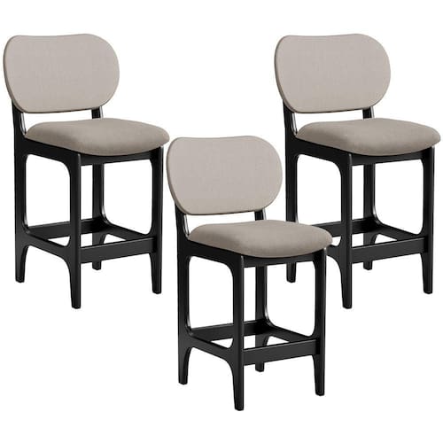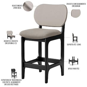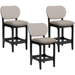 Amplamente sofisticada, o Kit 03 Banquetas Baixa Bar Cozinha Sala Jantar Betta L02 Linho Bege - Lyam Decor irá agregar ainda mais valor em sua decoração!! Sendo capaz de compor muito bem o ambiente, é produzida com materiais de excelente qualidade, a resistente estrutura em madeira de Taeda, na cor Preto, conta com apoio para os pés (que garante maior segurança), além do assento e encosto estofados super confortáveis e convidativos, que são revestidos em tecido Couríssimo, composição extremamente elegante.
