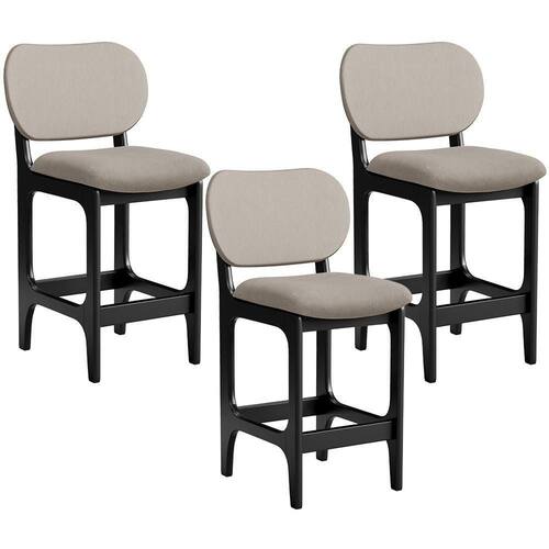 Amplamente sofisticada, o Kit 03 Banquetas Baixa Bar Cozinha Sala Jantar Betta L02 Linho Bege - Lyam Decor irá agregar ainda mais valor em sua decoração!! Sendo capaz de compor muito bem o ambiente, é produzida com materiais de excelente qualidade, a resistente estrutura em madeira de Taeda, na cor Preto, conta com apoio para os pés (que garante maior ), além do assento e encosto estofados super confortáveis e convidativos, que são revestidos em tecido Couríssimo, composição extremamente elegante.