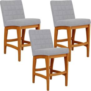 ndo muita excelência, o Kit 03 Banquetas Baixa Para Cozinha Bancada Bar Sala De Jantar 90 cm Fixa Mila L02 Suede Cinza - Lyam Decor é o complemento que faltava para deixar sua casa ainda mais extraordinária. Seu encosto com costura em padrão quadriculado e assento estofados, centralizam em si uma graciosidade estonteante, sem perder todo o seu conforto. A estrutura em madeira, na cor nozes, também é digna de notoriedade, por imprimir bastante personalidade a sua decoração. Vale ressaltar ainda, o apoio para os pés que garante maior à mesma.