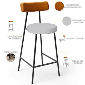 Amplamente moderna, dispondo de muito realce e design singular, o Kit 03 Banquetas Baixa Para Cozinha Sala De Jantar Bar Bancada Milão L02 Couríssimo Whisky Linho Cinza - Lyam Decor vem com a personalidade e elegância que sua decoração merece! Estruturada em aço carbono, contrasta lindamente com o encosto e assento estofados, cabe mencionar ainda seu revestimento em Couríssimo, é confeccionada por materiais de excelente qualidade, extremamente resistentes e aconchegantes.