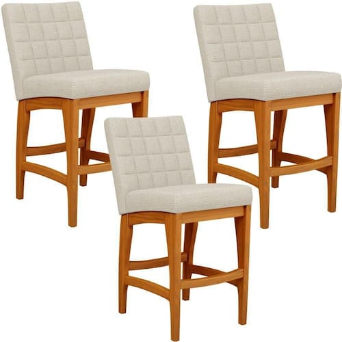 ndo muita excelência, o Kit 03 Banquetas Baixa Para Cozinha Bancada Bar Sala De Jantar 90 cm Fixa Mila L02 Linho Champagne - Lyam Decor é o complemento que faltava para deixar sua casa ainda mais extraordinária. Seu encosto com costura em padrão quadriculado e assento estofados, centralizam em si uma graciosidade estonteante, sem perder todo o seu conforto. A estrutura em madeira, na cor nozes, também é digna de notoriedade, por imprimir bastante personalidade a sua decoração. Vale ressaltar ainda, o apoio para os pés que garante maior à mesma.