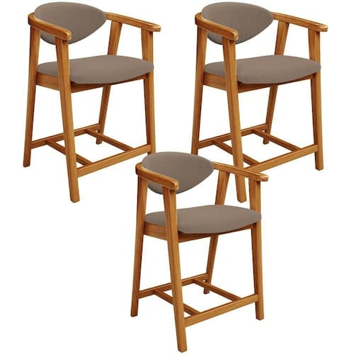 Esse kit de banquetas combina design moderno e funcionalidade, já que é ideal para cozinha, sala de jantar, bancada ou área gourmet. Além disso, são feitas com madeira de eucalipto vermelho tratado, o que garante durabilidade e sustentabilidade. Já o assento e encosto estofados com espuma de alta densidade proporcionam máximo conforto durante suas refeições ou momentos de descontração.