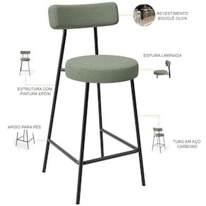 Amplamente moderna, dispondo de muito realce e design singular, a Banqueta Baixa Para Cozinha Sala De Jantar Bar Bancada Milão L02 Bouclê Oliva - Lyam Decor vem com a personalidade e elegância que sua decoração merece! Estruturada em aço carbono, contrasta lindamente com o encosto e assento estofados, cabe mencionar ainda seu revestimento em Bouclê, é confeccionada por materiais de excelente qualidade, extremamente resistentes e aconchegantes. Possui altura ideal, garantindo o encaixe perfeito no ambiente, otimizando seu espaço e promovendo máximo conforto. Pode ser disposta em bancada, cozinha americana, área gourmet ou home bar, as possibilidades são infinitas e as combinações ficarão perfeitas. Adquira já a sua!!