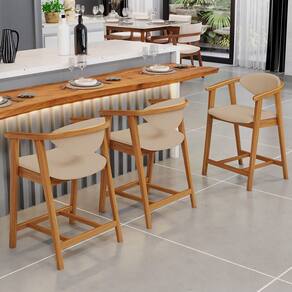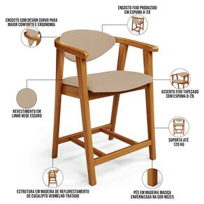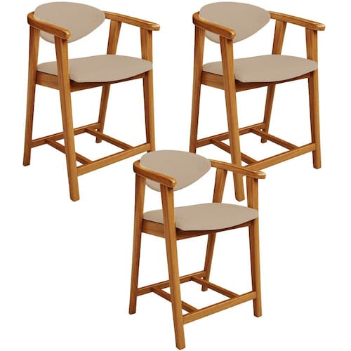 Kit 03 Banquetas Baixa Para Cozinha Sala Jantar Bancada Cecília L02 Linho Bege Escuro - Lyam Decor