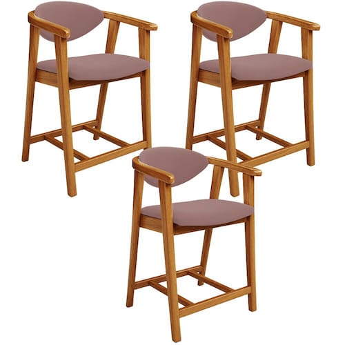 Kit 03 Banquetas Baixa Para Cozinha Sala Jantar Bancada Cecília L02 Suede Rosê - Lyam Decor - Rosa