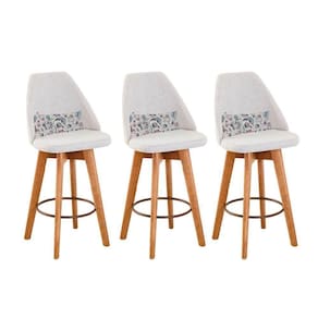 Kit 03 Banquetas Alta Maya Giratória Com Encosto Linho Bege Claro E Almofada Flores - Gat Magazine