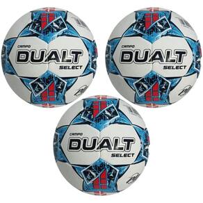 Kit com 3 Bolas de Futebol de Campo Dualt Select – Azul, Vermelho e Preto Garanta mais praticidade e desempenho em campo com o Kit Dualt Select, composto por 3 bolas de futebol de campo desenvolvidas para oferecer qualidade, resistência e performance em cada partida. Ideal para treinos, competições amadoras ou para quem deseja ter sempre bolas reservas à disposição, esse kit une economia e alto padrão de jogo. Diferenciais do kit:
