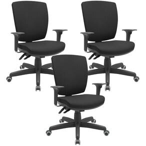 Kit 03 Cadeiras de Escritório Diretor Office Giratória Preto Alta Flexi P03 Poliéster Preto - Lyam
