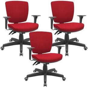 Kit 03 Cadeiras De Escritório Executiva Giratória Preto Baixa Flexi P03 Poliéster Vermelho - Lyam