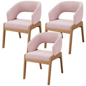 Kit 03 Cadeiras De Jantar E Estar Living Estofada Lince L02 Bouclê Rosê - Lyam Decor