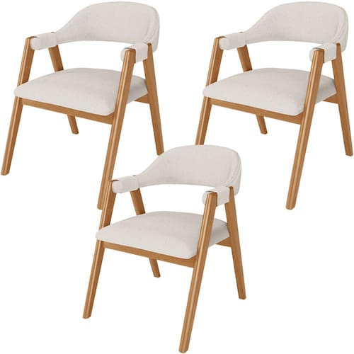 O Kit 03 Cadeiras de Jantar e Estar Living Estofada Nadja, das Lyam Decor, é a escolha perfeita para criar uma sala de jantar moderna e acolhedora. Com seu design curvo e pés de madeira maciça envernizada, essa cadeira estofada traz elegância e sofisticação ao ambiente. Além disso, é tapeçada com espuma d-26, o que proporciona um conforto excepcional, permitindo que você desfrute de momentos incríveis à mesa. Já o design orgânico combina beleza e modernidade, tornando-a uma peça única, enquanto os braços adicionam um toque extra de conforto e estilo.