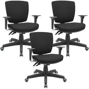 Kit 03 Cadeiras Escritório Executiva Office Giratória Preto Baixa Flexi P03 Poliéster Preto - Lyam