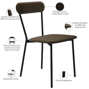 SizeDescription: Altura: 243 cm x Largura: 43 cm x Profundidade: 53 cm | Altura da cadeira: 243 cm | Cor do assento: Marrom Sand | ColorSimple: Marrom | ProductWidth: 43 cm | Largura da cadeira: 43 cm | Cor: Marrom Sand | ColorFamily: Marrom | ColorSupplier: Marrom Sand | Cor do estofamento: Marrom Sand | Fabricante: Lyam Decor | Material: Estrutura em Aço e MDP, Revestimento em Veludo e espuma | MaterialFamily: Aço, MDP, Veludo e espuma | Model: Liora | SupplierSimpleName: Kit 03 Cadeiras Estofada Para Sala de Jantar Liora Preto C01 Veludo Marrom Sand - Lyam Decor | Espessura do assento: na | Altura do assento a partir do solo: 49 cm | Peso máximo suportado: 120 kg | É dobrável: Não | É empilhável: Não | Requer montagem: Não | Tempo de montagem: na | ProductInstructions: Produto para uso em ambiente interno, nao devendo ficar exposto ao sol, calor e umidade excessivos. | OriginState: PR | Largura do assento: 43 cm | ProductWeight: 5,5 kg | Color: Marrom | ProductContents: 03 Cadeiras | OriginCountry: | ProductWarranty: 90 dias após o do produto | É cadeira de balanço: Não | Profundidade da cadeira: 53 cm | ProductLength: 53 cm | ProductHeight: 243 cm | Material do estofamento: Espuma D-22 e D-28 | Desenho do tecido: Liso | Firmeza: Firme | Cor da estrutura da cadeira: Preto | Profundidade do assento: 53 cm