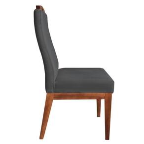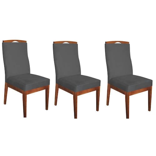 Conjunto 03 Cadeiras Para Sala De Jantar Ricco Estofada Madeira Carvalho Veludo Cinza Chumbo Escuro - Ahazzo Móveis Cor Cinza