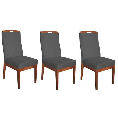 Conjunto 03 Cadeiras Para Sala De Jantar Ricco Estofada Madeira Imbuia Veludo Cinza Chumbo Escuro - Ahazzo Móveis Cor Cinza