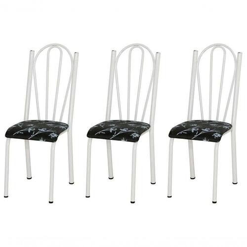 Kit 03 Cadeiras Tubular Branca 021 Assento Preto Florido Preto Florido Conjunto 03 cadeiras para sala de jantar ou cozinha, com design arrojado e super moderno proporcionando otimização ao ambiente. Estrutura em aço de carbono, com pintura epóxi a pó. Acabamento do assento em MDP e espuma D-30, revestido em tecido courvin. As estruturas suportam até 100 Kg. Estes móveis chegarão em sua casa separados em 03 volumes. Dimensões (3un) Altura 100 cm Largura 37 cm Profundidade 48 cm Largura do assento 35 cm