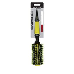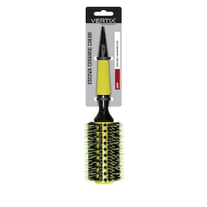 Cabo de madeira com borracha antiderrapante e formato pontiagudo para auxiliar na separação das mechas. Coleção - Ceramic Color Formato - Redonda Material das Cerdas - Natural Material do corpo - Madeira Tipo - Escova Função - Alisar Cor - Amarelo