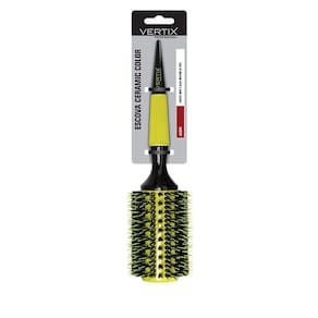 Escova redonda de madeira com base de cerâmica e cerdas naturais de javali intercaladas com pinos de nylon. A base de cerâmica retém o calor do secador por mais tempo, além de distribui-lo mais uniformemente. As cerdas e pinos proporcionam a tração ideal para cabelos mais volumosos e difíceis de penetrar. Ideal para alisamento de cabelos extra longos.