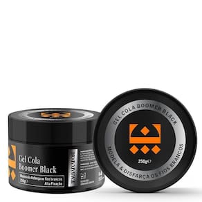 O Gel Cola Boomer Black Embaixador possui fixação extra forte, garantindo penteados intactos, proporcionando um efeito molhado durante todo o dia. Ainda oferece uma leve cobertura dos fios brancos ou grisalhos por conta de sua pigmentação na cor preta.