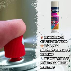 Tinta Spray 400ml Branco Brilhante Uso Geral em Aço Ferro Couro Gesso Cerâmica A Tinta Spray 400ml Branco Brilhante Uso Geral é a solução prática para renovar superfícies de metal, gesso, couro e cerâmica. Ideal para dar vida nova a bicicletas, móveis, eletrodomésticos e objetos em geral, garantindo um acabamento moderno e duradouro. Com fórmula de alta qualidade, oferece excelente aderência e acabamento Brilhante, além de resistência superior contra desgastes do dia a dia. Sua cobertura uniforme realça os detalhes e proporciona um resultado em poucas camadas. Prática e fácil de aplicar, a tinta spray seca ao toque em apenas 15 minutos, permitindo agilidade nos trabalhos e economia de tempo. O rendimento de até 2 m por demão garante maior aproveitamento do produto e ótimo custo-benefício. Diferenciais: Acabamento Brilhante com ótima aderência Alta durabilidade e resistência em ambientes internos e externos Secagem rápida e aplicação prática com cobertura uniforme Especificações TÉCNICAS: Volume: 400ml Rendimento: até 2 m por demão Superfícies indicadas: metal, gesso, couro e cerâmica Secagem: toque em 15 minutos Acabamento: Brilhante Recomendação: uso de primer para melhor desempenho Itens INCLUSOS: 03 Tintas Spray 400ml Branco Brilhante Uso Geral