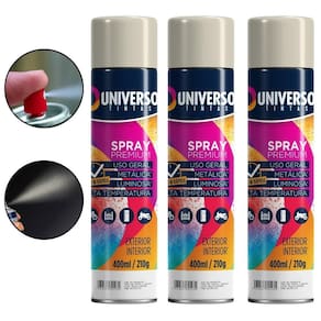Tinta Spray 400ml Branco Brilhante Uso Geral em Aço Ferro Couro Gesso Cerâmica A Tinta Spray 400ml Branco Brilhante Uso Geral é a solução prática para renovar superfícies de metal, gesso, couro e cerâmica. Ideal para dar vida nova a bicicletas, móveis, eletrodomésticos e objetos em geral, garantindo um acabamento moderno e duradouro. Com fórmula de alta qualidade, oferece excelente aderência e acabamento Brilhante, além de resistência superior contra desgastes do dia a dia. Sua cobertura uniforme realça os detalhes e proporciona um resultado em poucas camadas. Prática e fácil de aplicar, a tinta spray seca ao toque em apenas 15 minutos, permitindo agilidade nos trabalhos e economia de tempo. O rendimento de até 2 m por demão garante maior aproveitamento do produto e ótimo custo-benefício. Diferenciais: Acabamento Brilhante com ótima aderência Alta durabilidade e resistência em ambientes internos e externos Secagem rápida e aplicação prática com cobertura uniforme Especificações TÉCNICAS: Volume: 400ml Rendimento: até 2 m por demão Superfícies indicadas: metal, gesso, couro e cerâmica Secagem: toque em 15 minutos Acabamento: Brilhante Recomendação: uso de primer para melhor desempenho Itens INCLUSOS: 03 Tintas Spray 400ml Branco Brilhante Uso Geral