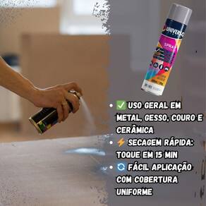 Tinta Spray 400ml Cinza Uso Geral em Aço Ferro Couro Gesso Cerâmica A Tinta Spray 400ml Cinza Uso Geral é a solução prática para renovar superfícies de metal, gesso, couro e cerâmica. Ideal para dar vida nova a bicicletas, móveis, eletrodomésticos e objetos em geral, garantindo um acabamento moderno e duradouro. Com fórmula de alta qualidade, oferece excelente aderência e acabamento Brilhante, além de resistência superior contra desgastes do dia a dia. Sua cobertura uniforme realça os detalhes e proporciona um resultado em poucas camadas. Prática e fácil de aplicar, a tinta spray seca ao toque em apenas 15 minutos, permitindo agilidade nos trabalhos e economia de tempo. O rendimento de até 2 m por demão garante maior aproveitamento do produto e ótimo custo-benefício. Diferenciais: Acabamento Brilhante com ótima aderência Alta durabilidade e resistência em ambientes internos e externos Secagem rápida e aplicação prática com cobertura uniforme Especificações TÉCNICAS: Volume: 400ml Rendimento: até 2 m por demão Superfícies indicadas: metal, gesso, couro e cerâmica Secagem: toque em 15 minutos Acabamento: Brilhante Recomendação: uso de primer para melhor desempenho Itens INCLUSOS: 03 Tintas Spray 400ml Cinza Uso Geral Marca: Não Informado