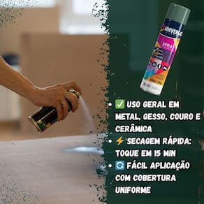 Tinta Spray 400ml Verde Escuro Uso Geral em Aço Ferro Couro Gesso Cerâmica A Tinta Spray 400ml Verde Escuro Uso Geral é a solução prática para renovar superfícies de metal, gesso, couro e cerâmica. Ideal para dar vida nova a bicicletas, móveis, eletrodomésticos e objetos em geral, garantindo um acabamento moderno e duradouro. Com fórmula de alta qualidade, oferece excelente aderência e acabamento Brilhante, além de resistência superior contra desgastes do dia a dia. Sua cobertura uniforme realça os detalhes e proporciona um resultado em poucas camadas. Prática e fácil de aplicar, a tinta spray seca ao toque em apenas 15 minutos, permitindo agilidade nos trabalhos e economia de tempo. O rendimento de até 2 m por demão garante maior aproveitamento do produto e ótimo custo-benefício. Diferenciais: Acabamento Brilhante com ótima aderência Alta durabilidade e resistência em ambientes internos e externos Secagem rápida e aplicação prática com cobertura uniforme Especificações TÉCNICAS: Volume: 400ml Rendimento: até 2 m por demão Superfícies indicadas: metal, gesso, couro e cerâmica Secagem: toque em 15 minutos Acabamento: Brilhante Recomendação: uso de primer para melhor desempenho Itens INCLUSOS: 03 Tintas Spray 400ml Verde Escuro Uso Geral Marca: Não Informado