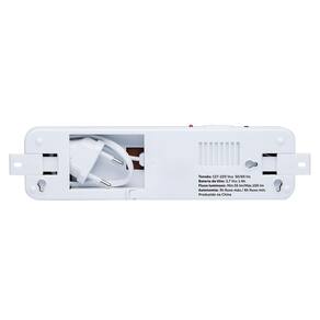 Especificações técnicas - Aplicação Ambiente interno - Autonomia 6 horas fluxo mínimo / 3 horas fluxo máximo - Fluxo luminoso 55 lumens fluxo mínimo / 100 lumens fluxo máximo Bateria de íon-lítio 3,7 Vdc 1 Ah - Tempo de carga 24h 220 V / 48h 127 V - Tensão de alimentação 100 a 240 Vac 50/60 Hz - Peso 94 g - Ideal para ambiente de até 30m - Autonomia de até 6 horas - Bateria de lítio - Botão de teste - Chave seletora - Sistema antifurto - Kit completo para instalação - Dimensão Embalagem L A P 160 41 25,6 mm