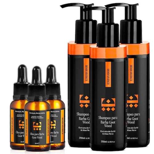 Kit 03 Óleo Barba Goot Wood + 03 Shampoo Barba Goot Wood Embaixador 200ml